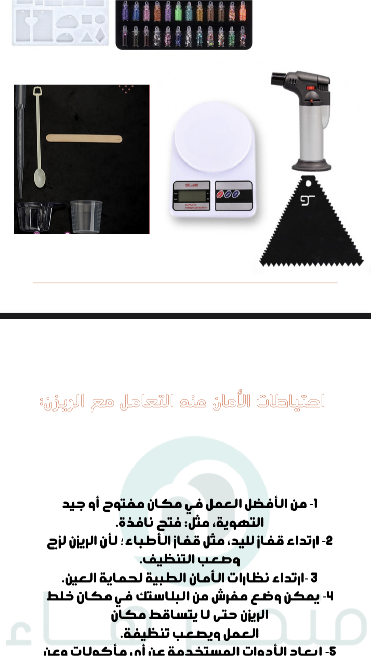 - الادوات المستخدمة لصناعة الرزين